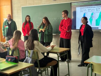 L’activitat ha inclòs una mostra informativa amb materials elaborats pels mateixos estudiants, on s’han recollit testimonis, dades i context històric per ajudar a comprendre millor la situació actual. L’alumnat també ha dinamitzat un espai de reflexió col·lectiva per convidar a la comunitat educativa a debatre i compartir inquietuds sobre la importància de la pau, la convivència i la solidaritat internacional.