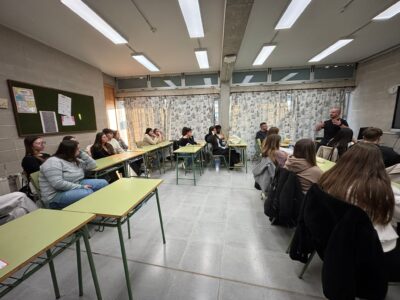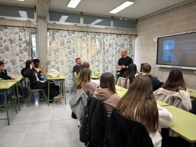 Avui, 15 de gener de 2026, l’alumnat de primer i segon curs del CFGM TAPSD ha tingut l’oportunitat d’assistir a una xerrada a càrrec de Marc Rios Vich, autor del llibre Sala d’esferes. La trobada ha permès apropar l’experiència literària a l’aula i conèixer de primera mà el procés creatiu de l’obra, així com les motivacions i reflexions que hi ha al darrere.