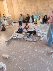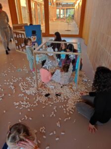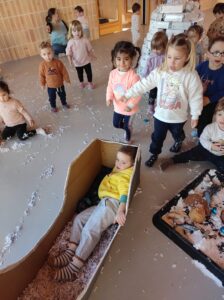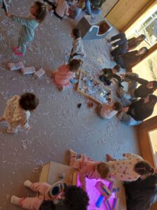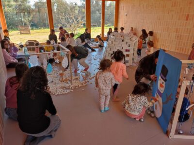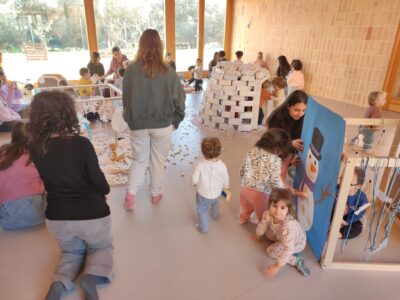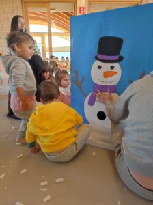 Per a l’ocasió, les nostres alumnes varen preparar i aportar material d’elaboració pròpia per dur a terme una jornada de joc tematitzada en l’hivern. Neu artificial, iglús, trineus i altres elements ambientats en aquesta estació varen transformar els espais en un escenari lúdic que va estimular la imaginació i la participació activa dels infants.